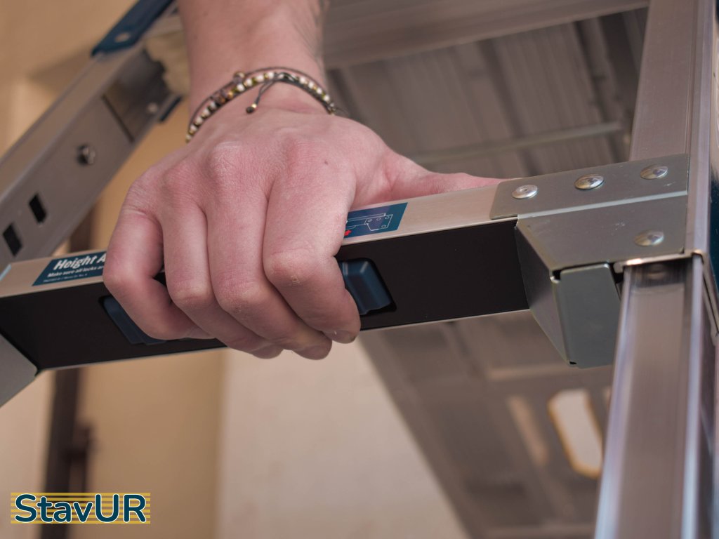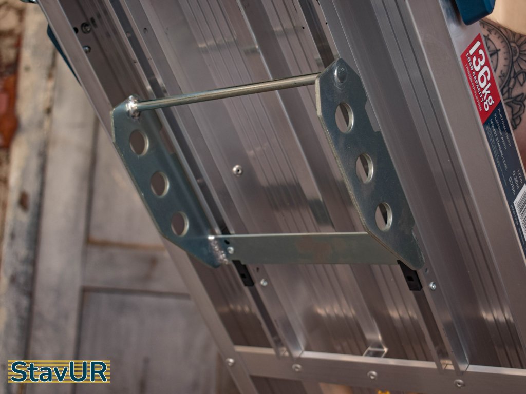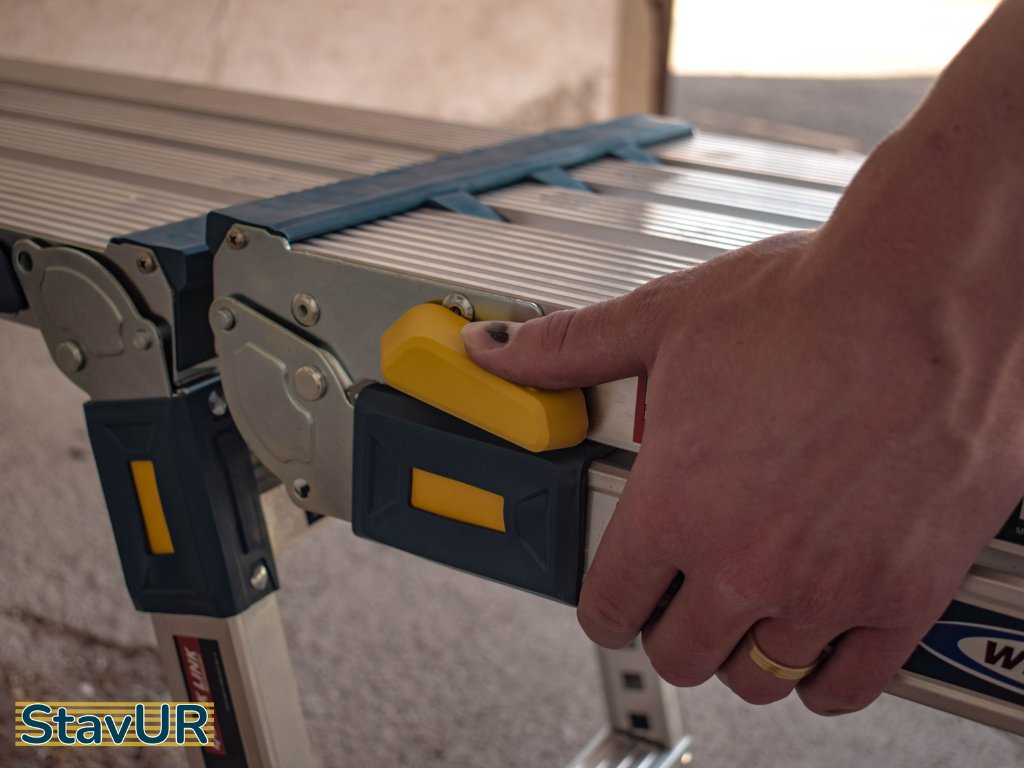 | Varianta | Materiál | Nastaviteľná výška | Možné napojenie | Veľkosť nášľapnej plochy (cm) | Plocha vo výške (m) | Pracovná výška (m) | Zložená: dĺžka × šírka × výška (cm) | Hmotnosť (kg) |