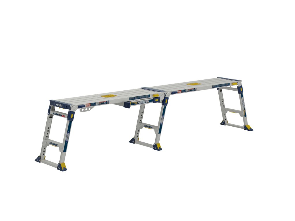 AP2030 Teleskopická nášľapná pracovná plošinaTeleskopická napojovacia pracovná plošina AP2030L je súčasťou profesionálnej rady Werner a prináša výškovú flexibilitu, multifunkčnosť a možnosť prepojenia viacerých AP2030L plošín. Vďaka špeciálnemu systému môžete jednoducho spojiť viac jednotiek AP2030L dohromady a vytvoriť tak stabilnú pracovnú plochu s väčšou šírkou alebo dĺžkou podľa potreby. S teleskopickými nohami dosiahnete až do 2,51 m, pričom nášľapnú plochu si nastavíte v rozmedzí 0,51 m – 0,76 m. Využitie aj na schodisku robí z tejto plošiny ideálne riešenie do rôznych pracovných podmienok. Veľké stabilné nohy s pevným gumovým povrchom chránia podlahy a dodávajú plošine pevnosť. Vroubkovaná protišmyková plocha s rozmermi 1,16 m × 0,35 m poskytuje istotu a komfort pri práci. Napriek robustnému prevedeniu je plošina príjemne ľahká, vyrobená z hliníka a nami otestovaná na zaťaženie 300 kg bez akýchkoľvek problémov. Prenos uľahčuje praktické Easy-grab™ madlo a samo-zacvakávací systém nôh, ktorý zaručuje rýchle a jednoduché nastavenie bez zložitého skladania. Plošina AP2030L tak ponúka nielen spoľahlivosť a bezpečnosť, ale aj možnosť rozšírenia pracovného priestoru spojením viacerých plošín v jeden celok. |