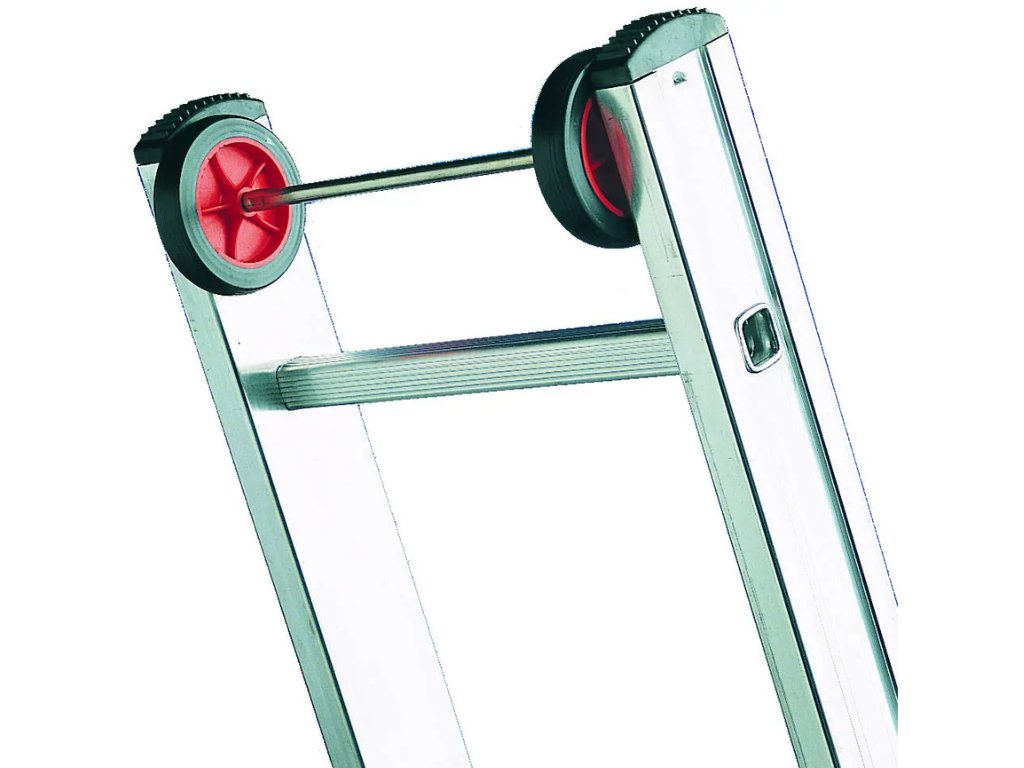 EURO E2F Dvojdielny výsuvný rebrík s lanomDvojdielny výsuvný rebrík EURO E2F z drážkovaného hliníka je určený pre profesionálne použitie v stavebníctve, údržbe a technických prevádzkach. Robustná konštrukcia z kvalitného hliníka zaisťuje vysokú pevnosť, dlhú životnosť a zároveň nízku hmotnosť pre jednoduchú manipuláciu. Rebrík spĺňa požiadavky európskej normy EN 131 a má nosnosť 150 kg, čo ho robí vhodným pre každodenné profesionálne nasadenie. Rebrík je vybavený lanovým výsuvným systémom s kladkou, ktorý umožňuje plynulé a bezpečné vysúvanie. V prípade nechceného uvoľnenia lana sa kladka automaticky zachytí o najbližšiu priečku, čím zabráni samovoľnému zosunutiu horného dielu rebríka. Protišmykové priečky o rozmere 27 × 27 mm s rozostupom 28 cm zaisťujú pohodlný a stabilný nášľap. Súčasťou výbavy sú tiež kolieska pre jednoduchý posun po stene, základový stabilizátor s nylonovou výstuhou, zariadenie na blokáciu vysunutia, ktoré zabraňuje pohybu rebríka po dosiahnutí bezpečnostného limitu, a protišmykové gumové patky. Tieto prvky spoločne zaručujú vysokú úroveň bezpečnosti a komfortu pri práci vo výškach. |