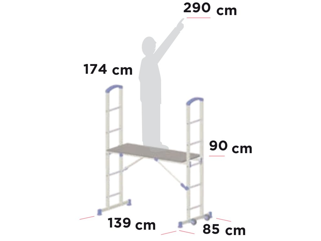 Mini hliníkové lešenie PEY je spoľahlivým riešením pre všetky domáce aj menšie vonkajšie projekty. Vďaka svojej odolnej hliníkovej konštrukcii ponúka výbornú stabilitu a dlhú životnosť, pričom zostáva ľahké a jednoducho prenosné. Kompaktný dizajn umožňuje dosiahnuť pracovnú výšku až 2,9 m, takže pohodlne zvládnete maľovanie stien, čistenie okien alebo drobné opravy.