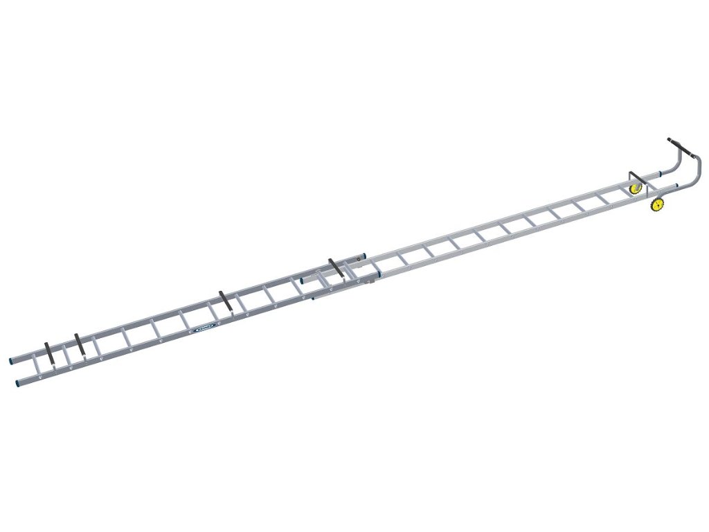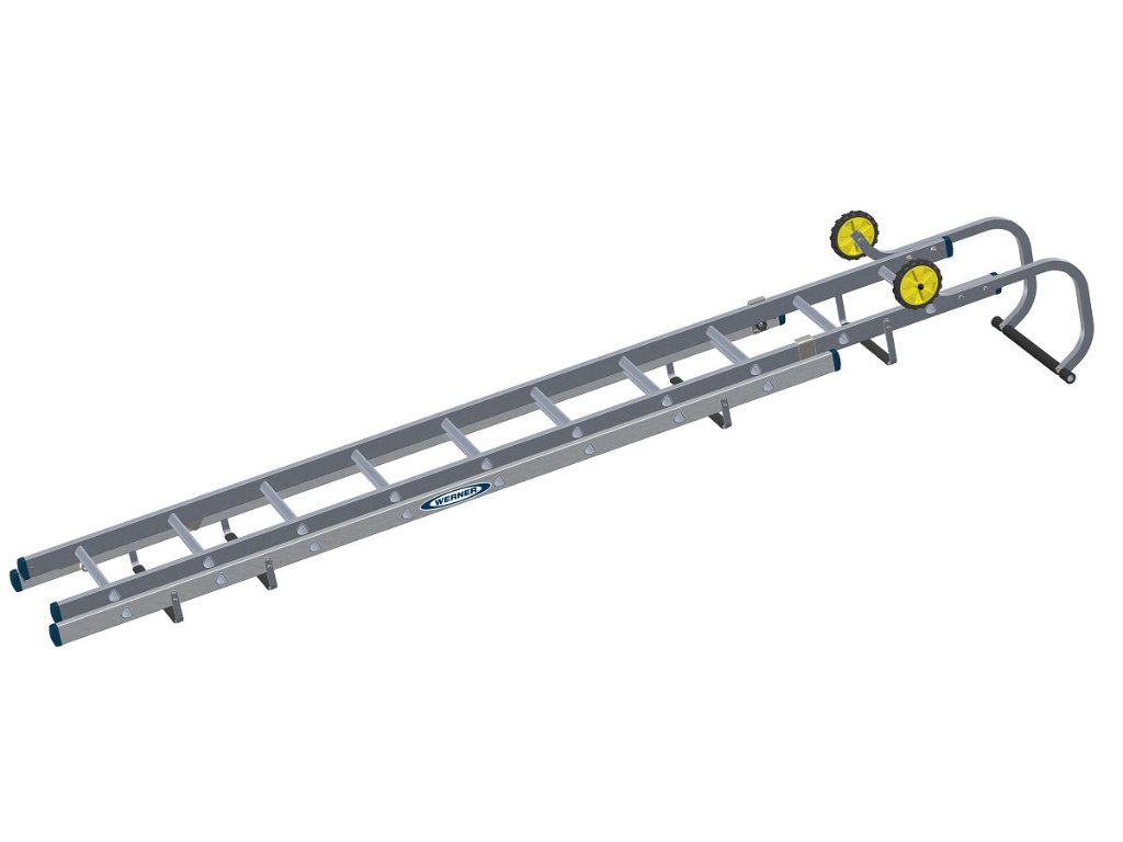 Dvojdielny strešný rebríkRebrík na strechu Werner je ideálny pre údržbárov, pokrývačov, klampiarov, elektrikárov, kominárov či pri inštalácii solárnych panelov. Je vyrobený z ľahkého hliníka, pričom si zachováva vysokú pevnosť a odolnosť. Rebrík je určený na strechy so sklonom od 15° do 55°, teda na povrchy, po ktorých sa nedá bezpečne chodiť vzpriamene. Špeciálne tvarovaný hák na strechu poskytuje bezpečné uchytenie bez potreby ďalšieho pripojenia. Každý bod kontaktu so strechou je vybavený gumou pre lepšiu priľnavosť a ochranu strešnej krytiny. Veľké pogumované kolieska uľahčujú prenášanie a presné umiestnenie rebríka, zatiaľ čo oporné tyče chránia povrch strechy a zaisťujú pohodlnejšie lezenie vďaka odstupu od krytiny (5 cm). Rebrík možno použiť aj v čiastočne vysunutom stave, keďže funguje na rovnakom systéme ako klasický výsuvný rebrík. Priečky v tvare „D“ s vrúbkovaným povrchom poskytujú maximálnu bezpečnosť a komfort pri práci vo výškach. Tento tvar a štruktúra znižujú riziko pošmyknutia a zároveň uľahčujú stabilné a pohodlné státie. Priečky sú nalisované pod uhlom, čo napomáha prirodzenej polohe nôh a prispieva k lepšej rovnováhe. Vďaka týmto detailom je rebrík po umiestnení na strechu bezpečný, stabilný a pohodlne prístupný. |